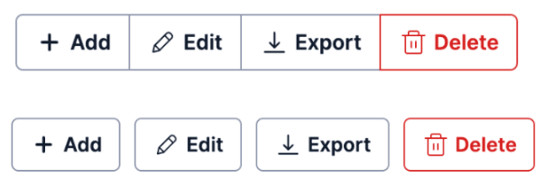 The Button Group component is stylistically similar to the Radio Button Group, but doesn’t operate as a Radio Group. The Button Group is used for sets of related actions, rather than mutually exclusive options, that would otherwise be separate buttons.